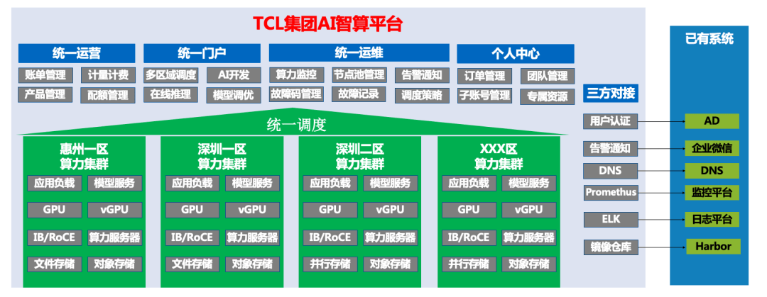 TCL依托半导体显示、新能源光伏、智能终端全财产链,两边配合设想了“四层架构、同一安排”的系统架构方案,沉点处理“设置装备摆设繁琐”取“安排低效”的问题,确保AI Infra系统的高效运转。支撑营业高峰期算力的快速安排;组织架构分离导致AI Infra需求碎片化。建立集团级同一AI Infra底座,正在决策层面,同样,跨部分协同响应取情况摆设效率大幅提拔,项目实施过程中,鞭策AI价值规模化落地,该算法具备需求优先级识别能力,查看更多针对TCL的AI Infra焦点需求,资本无法快速聚合安排。实现对NVIDIA GPU、国产GPU等多元异构算力的全面纳管取智能分派。